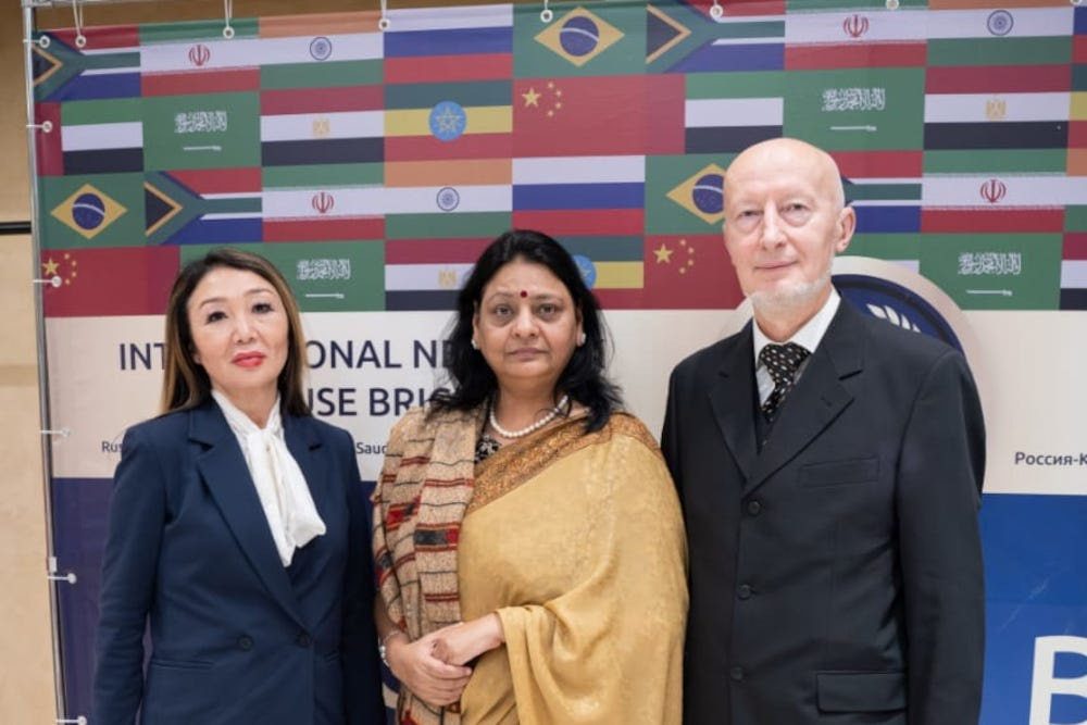 На торжественной церемонии открытия «Дома БРИКС+» был вручен диплом Почетного доктора Евразийского международного университета Пурниме Ананд, президенту Международного форума БРИКС. Степень Почетного доктора присваивается за выдающийся вклад в укреплении мира, дружбы народов, развитии экономики и культуры.